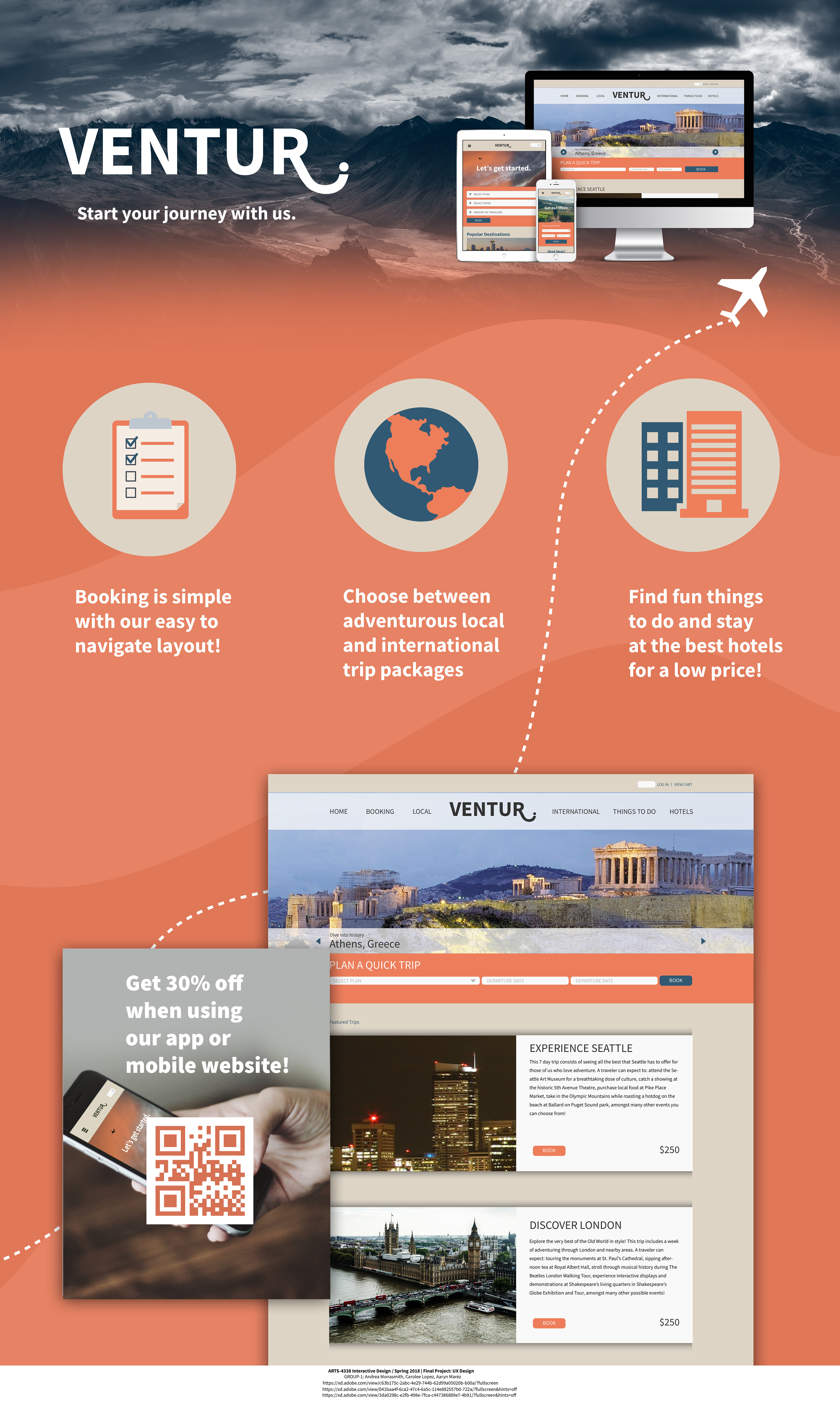 Final Project for my Interactive Design class at University of Texas Rio Grande Valley. We were to create a mockup displaying a fictitious travel website.